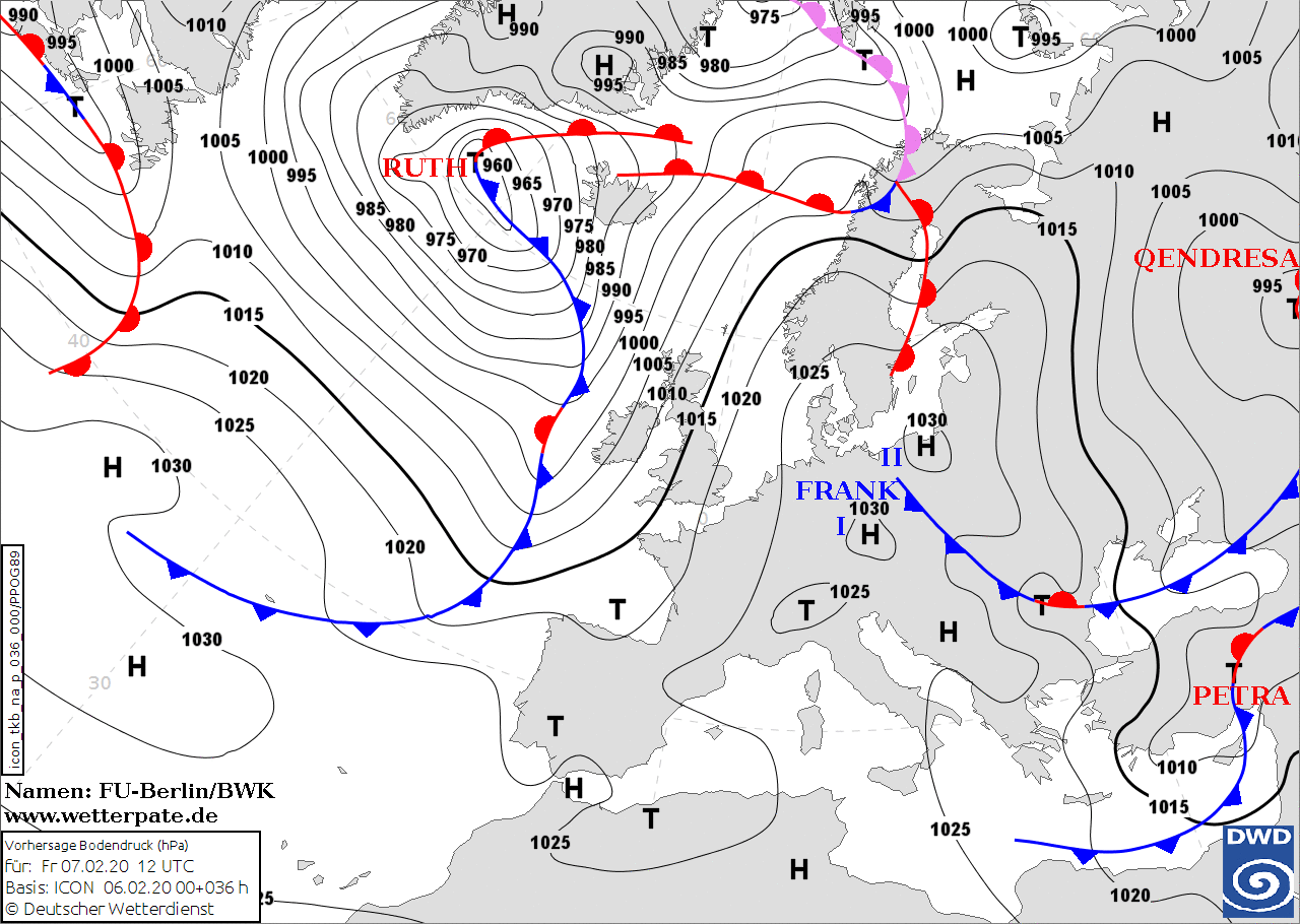 Ein atlantischer Hochdruck-Keil versucht sich zu platzieren.