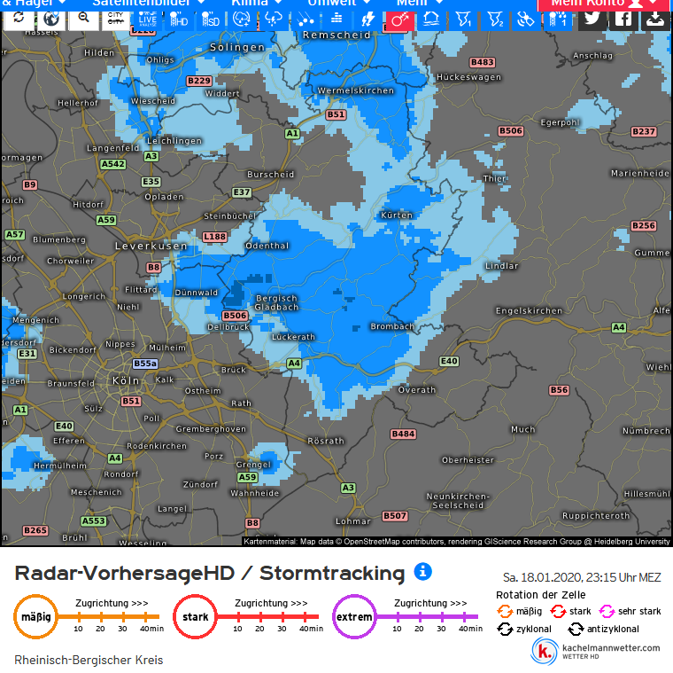 13.1. Seit heute Nachmittag bewarnt der DWD auch das Bergische Land. Hier zum Beispiel Solingen: