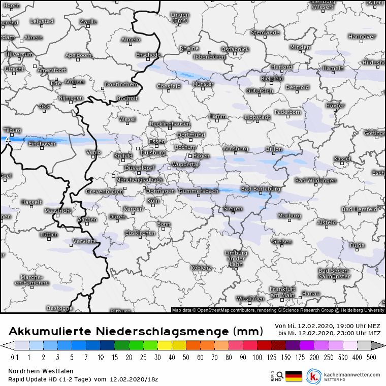 Wipperfürth 1,3 mm, Reichshof-Eckenhagen 0,6 mm, Neunkirchen-Seelscheid 0,9 mm, Bergisch Gladbach 0,5mm.