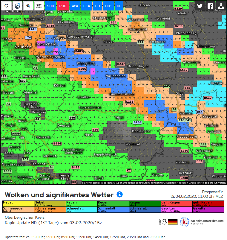 Super HD Modell und dem Rapid HD Modell bis Dienstag 07 Uhr. Als Beispiel Burscheid um 7 Uhr -3 oder 0 Grad ?
