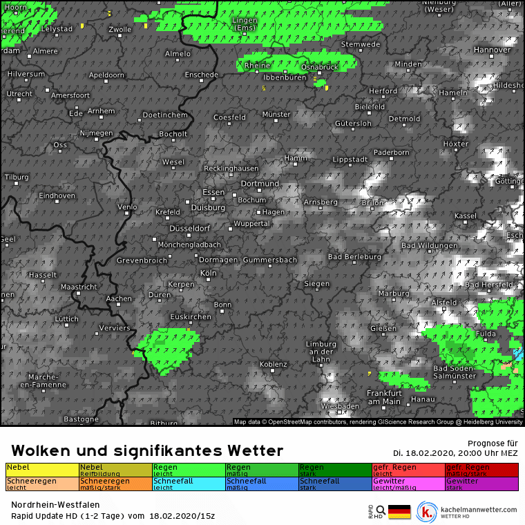 und in der zweiten Animation den erwarteten Niederschlag bis Mittwochabend.18. 02. 19:22