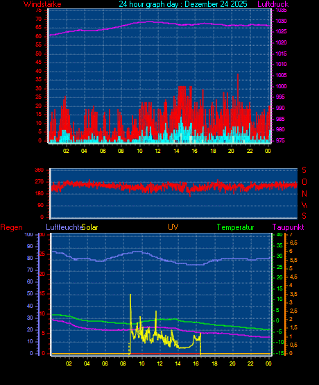 Höchstes Windmittel = 14.8 kmh aus 054°( NE) tag 24 zeit 14:28