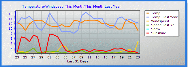 Höchstes Windmittel = 29.6 kmh aus 261°( W ) tag 23 zeit 18:43
